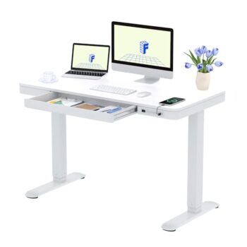 FLEXISPOT Elektrisch Höhenverstellbarer Schreibtisch mit Touch Funktion & USB, Elektrischer Schreibtisch mit Schublade, Bürotisch 120 * 60 cm (Weiß)