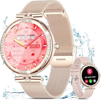 Smartwatch Damen mit Telefonfunktion 1.19" AMOLED Touchscreen IP68 Diamond Smart Watch mit 24H Pulsuhr Menstruationszyklus 120+ Sportmodi Schrittzähler Kalorien Fitness Tracker iOS Android (Rosegold)