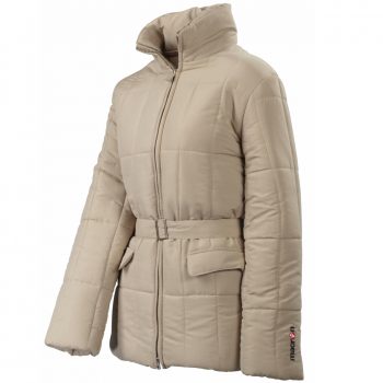 - zweilagiger Stehkragen, Innenkragen heraustrennbar durch Reiß- und Druckknopfverschluss