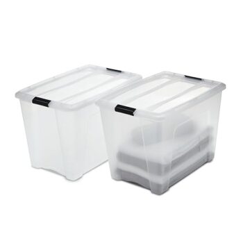 Iris Ohyama Aufbewahrungsboxen mit Deckel, 60L, 2er-Set, Transparent, Sicherer Verschluss, Stapelbar, Griffe, für Schlafzimmer, Schrank, Organisation, BPA-freies Plastik, Ordnungsboxen, NTB-60