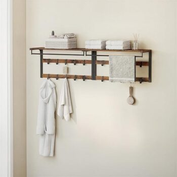 - [3 in 1] Mit dem oberen Regalboden, den abnehmbaren Haken und der Aufhängestange kombiniert diese Wandgarderobe Aufbewahrung, das Aufhängen von Kleidung und...